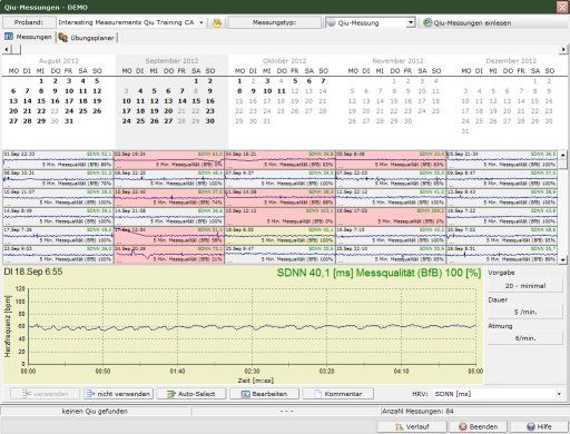 Con el Qiu, la monitorización de la VFC es especialmente sencilla: cada ejercicio de Qiu es también una medición de la VFC que se almacena en el Qiu. El HRV-Scanner puede leer, analizar y mostrar estos datos HRV a través de USB o Internet. La monitorización de la VFC es sencilla con la combinación de Qiu y HRV-Scanner.